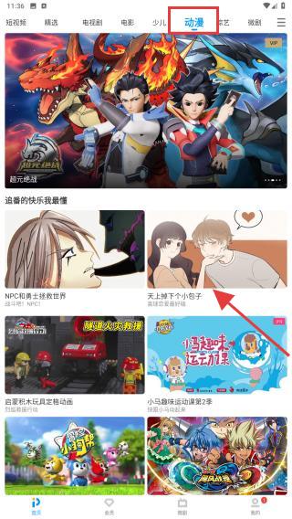 2、在动漫专区中,点击想要观看的动漫封面,如:天上掉下个小包子。