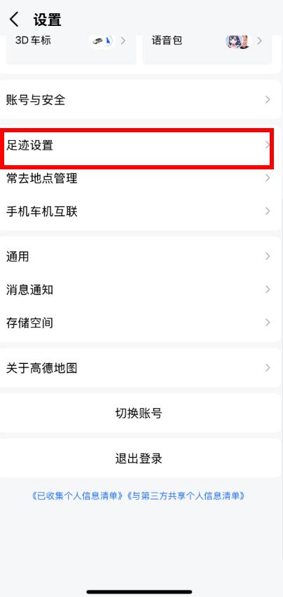 3、在设置界面中,找到并点击足迹设置,即可进入相关设置页面。