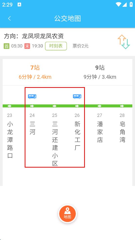 2、周边线路地图导航,附近公交距离多远、还有几站到一目了然