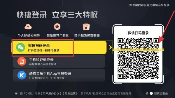 5.【登录】增加酷狗手机应用扫码,账号数据更统一。