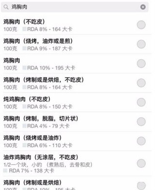 5、他还可以告诉你,同一种食品,怎样制作或者是怎样吃卡路里更少,烤制,脱脂,切片状则能将鸡胸脯的卡路里尽可能的降到最低。非常的详细,只要你肯花功夫,你就能得到最优的一餐