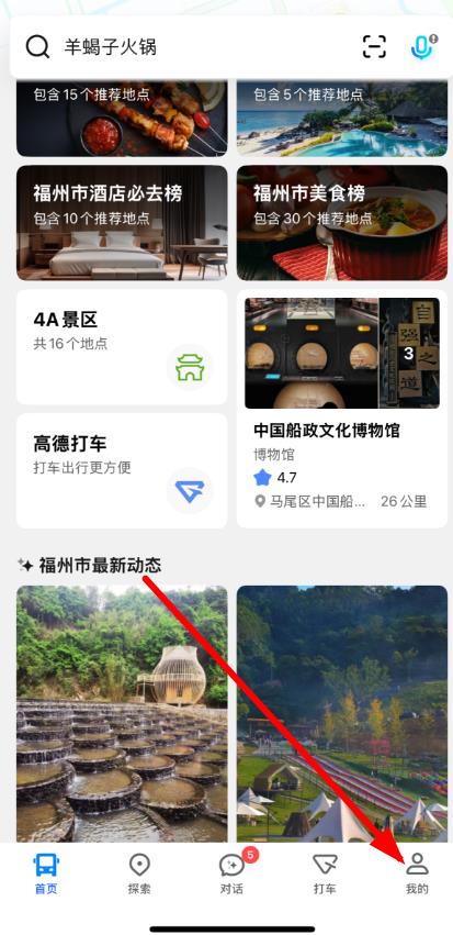 1、打开高德地图APP,点击底部导航栏中的我的。