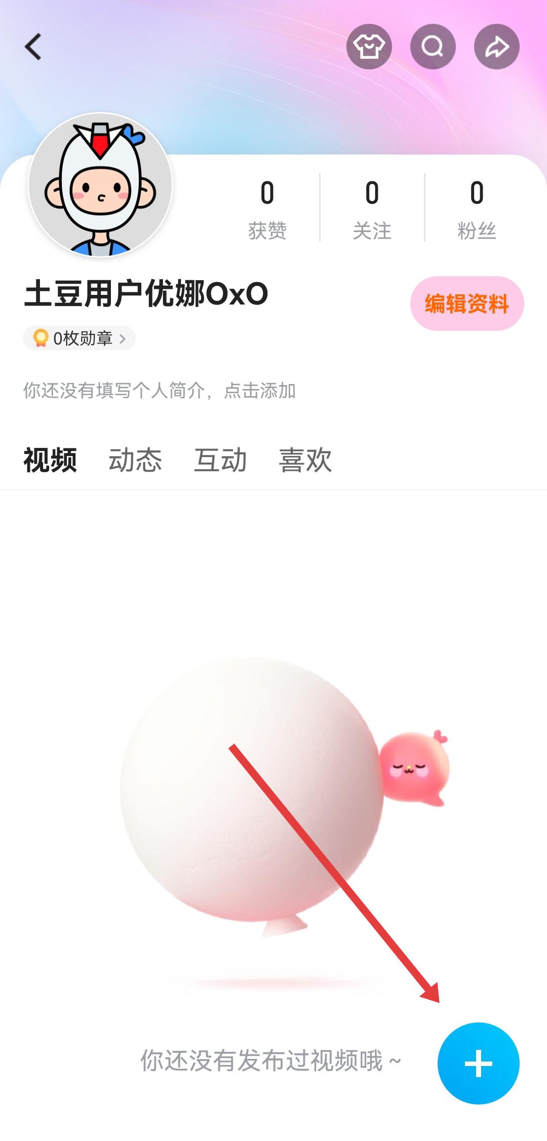 2、在个人的主页中,点击右下角的蓝色加号按钮,以此进入作品发布的编辑环节。
