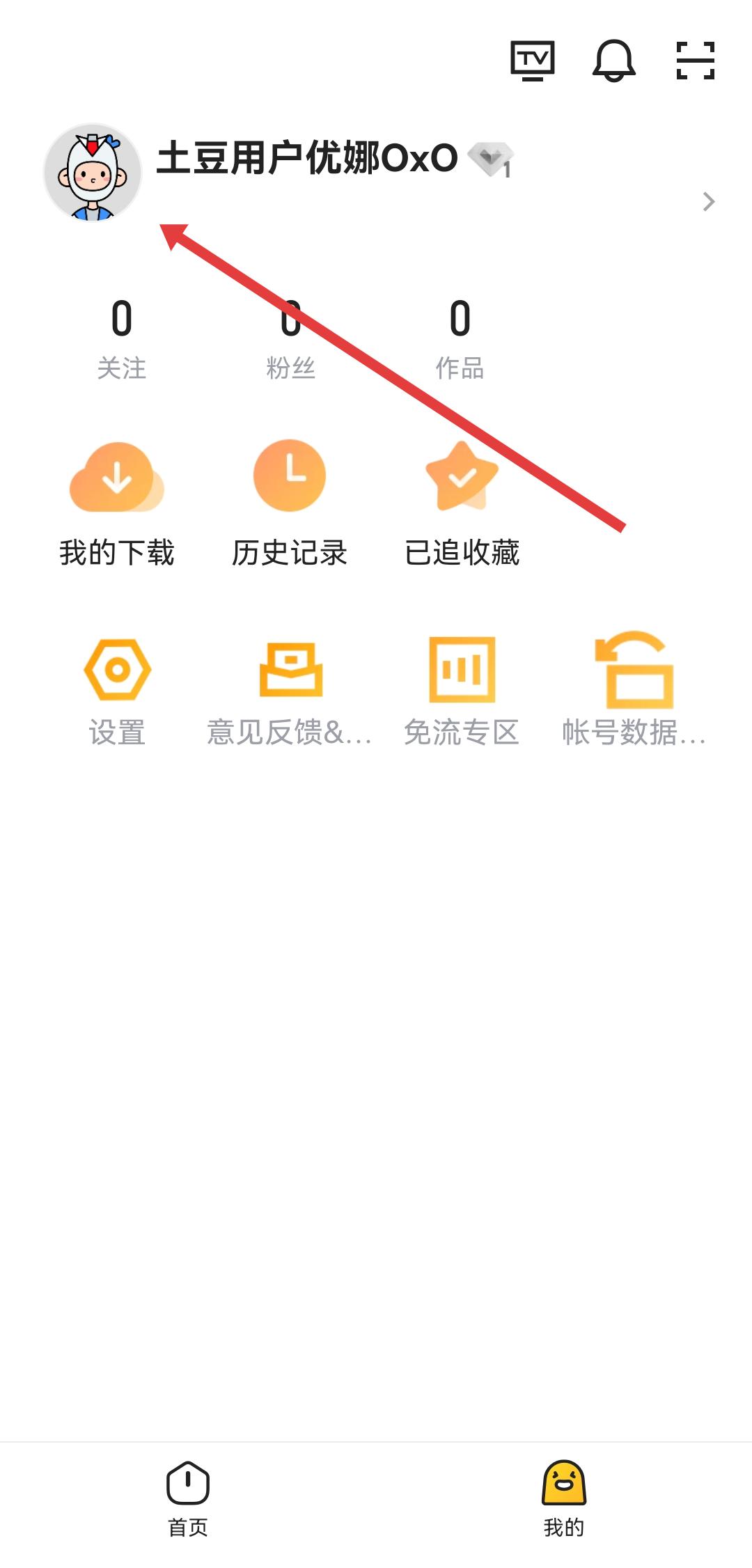 1、进入我的页面后,点击个人头像,进入个人主页,这是发布作品的前置操作步骤。