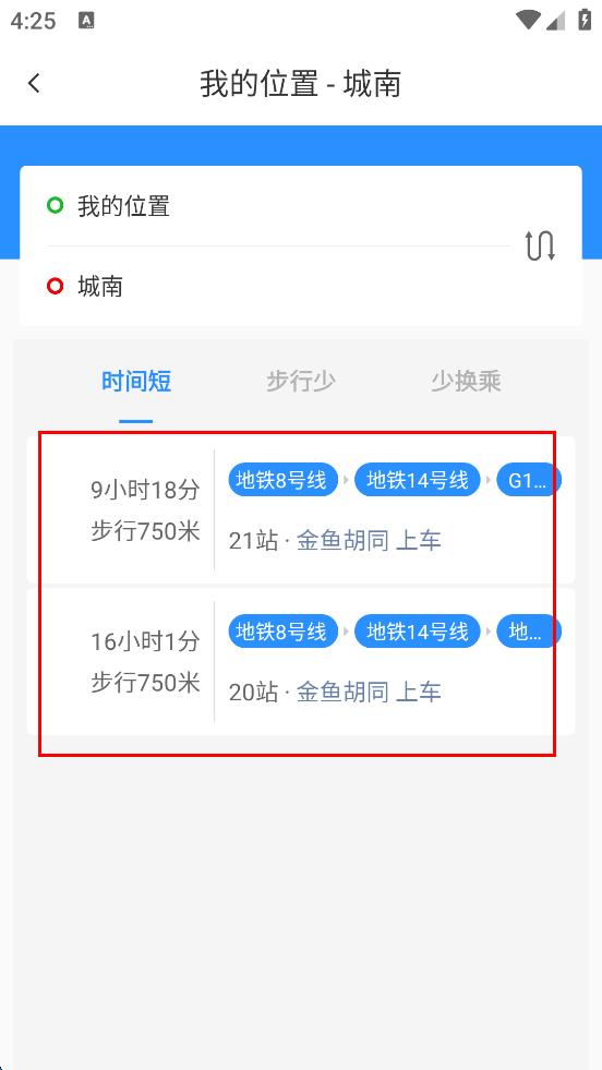 4、一般来说用户们在输入自己的起点和目的地之后系统至少会选出三种适宜的出行方式供用户们去挑选;