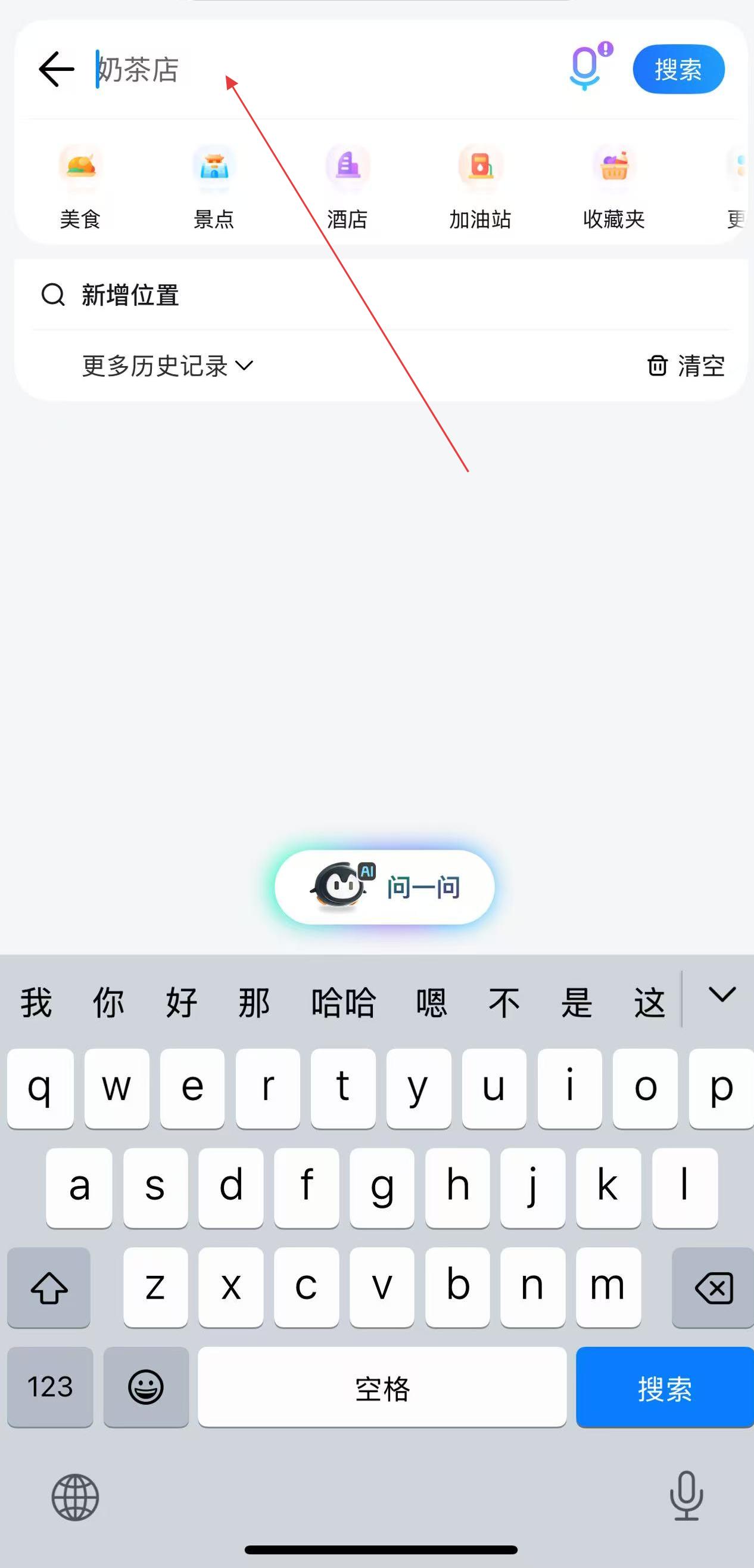 2、输入完成后,点击键盘上的搜索按钮,或者点击搜索栏右侧的蓝色搜索按钮 。