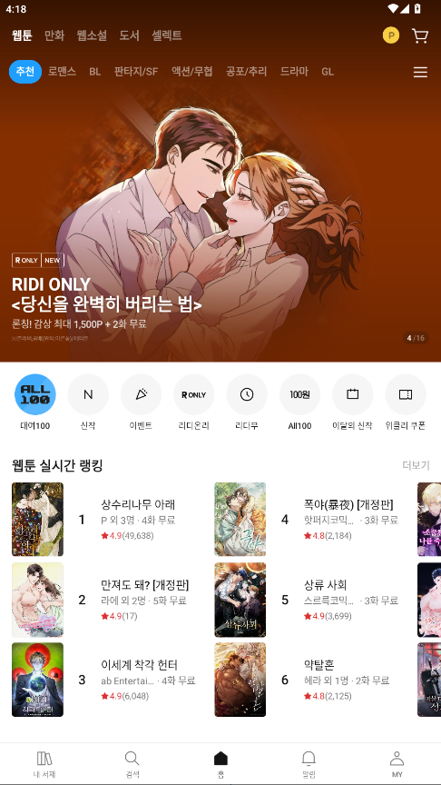 Ridibooks是一款韩国知名的数字阅读平台APP,主打高质量漫画、电子书与网络小说,尤其以多样化的韩漫资源深受读者喜爱。应用界面简洁易用,支持高清全彩阅读体验,更新快速,连载作品同步上线。用户可通过分类与推荐轻松发现新作,还能将喜爱的漫画加入书架,随时追更。APP支持离线下载、夜间模式等贴心功能,带来舒适流畅的阅读体验,是漫画爱好者必备的掌上阅读工具。
