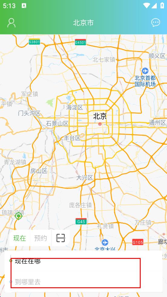 4.打开平台就能直接定位到自己目前所在的位置,然后自己输入终点就可以叫车了。