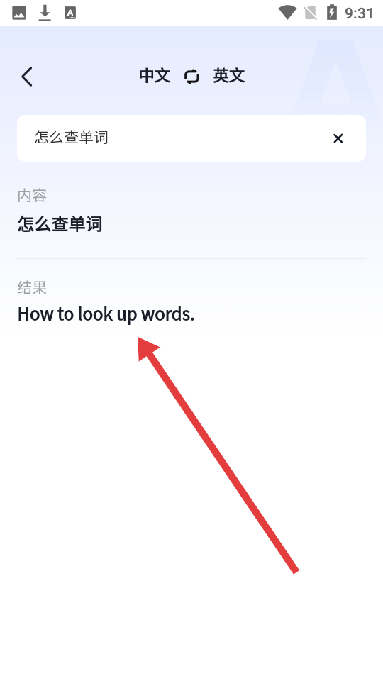 3、点击翻译按钮,即可查看单词或句子的翻译后的结果。