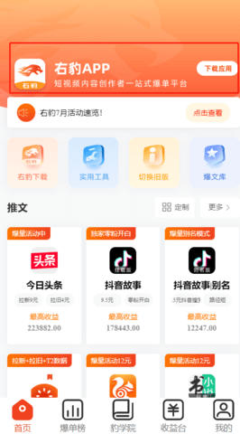 右豹是一款非常好用的手机短视频创作软件。软件中有着多种不同的功能可以进行使用,从而用户可以自由的选择需要更好的提升用户的作品的流量,并且软件有着非常高的兼容性,适用于多种设备进行使用非常的便捷。同样软件中有着非常庞大的资源进行使用,并且软件中界面设计非常的简洁,用户可以更好的进行操作使用。当然,软件中用户可以随时随地进行使用。