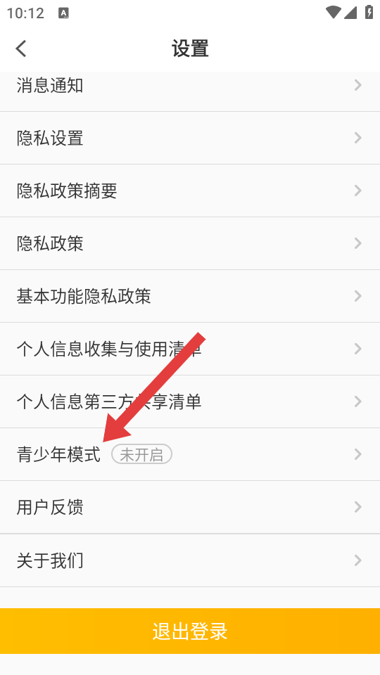 2、在设置界面中,找到青少年模式的选项并点击,进入青少年的模式设置页面。