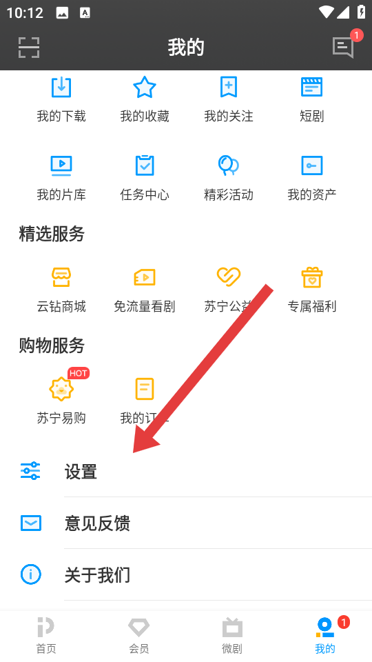 1、打开PP视频APP,进入我的页面,找到并点击设置选项,进入设置的界面。