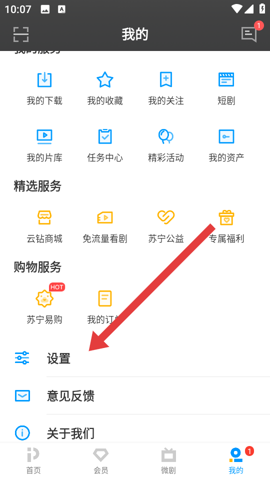 1、打开PP视频APP,进入我的页面,找到并点击设置选项,进入设置的界面。