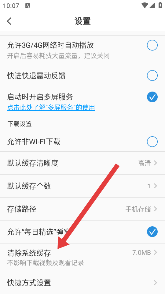 2、在设置的界面中,找到清除系统缓存选项并点击,后面会弹出确认清除系统缓存吗的提示框。
