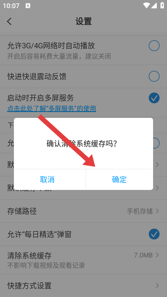 3、需要在提示框中点击确定的按钮,即可完成PP视频缓存数据的删除操作。