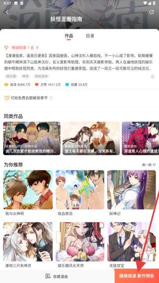2、进入到详情页面内,点击继续阅读进入漫画阅读界面。