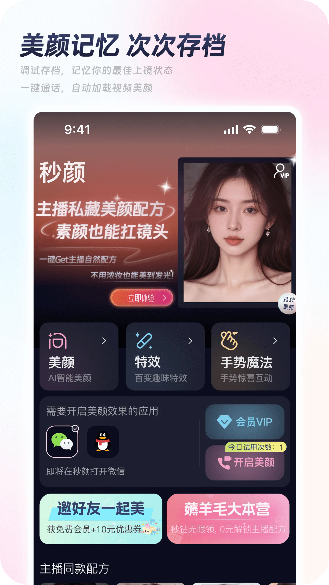 2、支持在微信视频通话中实时应用美颜效果,提升通话质量。