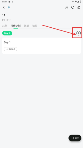 3、进入行程页面后,点击右上角的+按钮,可添加行程相关内容。