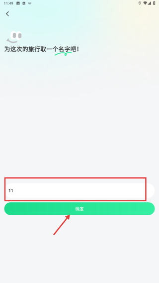 2、在旅行取名页面,为这次旅行取一个名字,例如输入11,然后点击确定按钮。