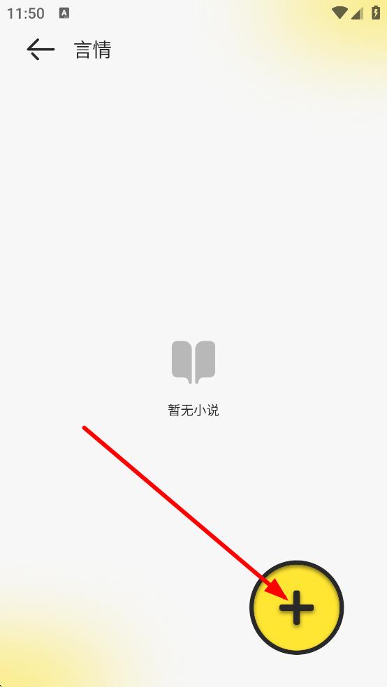 2、在言情分类页面,点击右下角黄色加号按钮,进入添加小说页面。