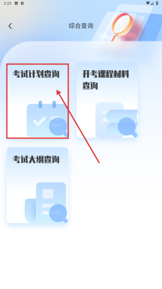 2、在综合查询页面,点击考试计划查询选项,进入考试计划查询页面。