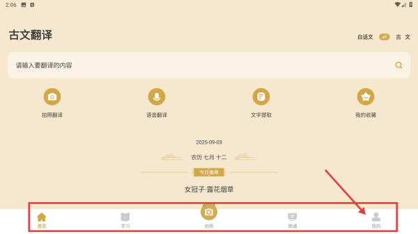1、打开古文翻译类应用,点击底部我的选项,进入个人中心页面。