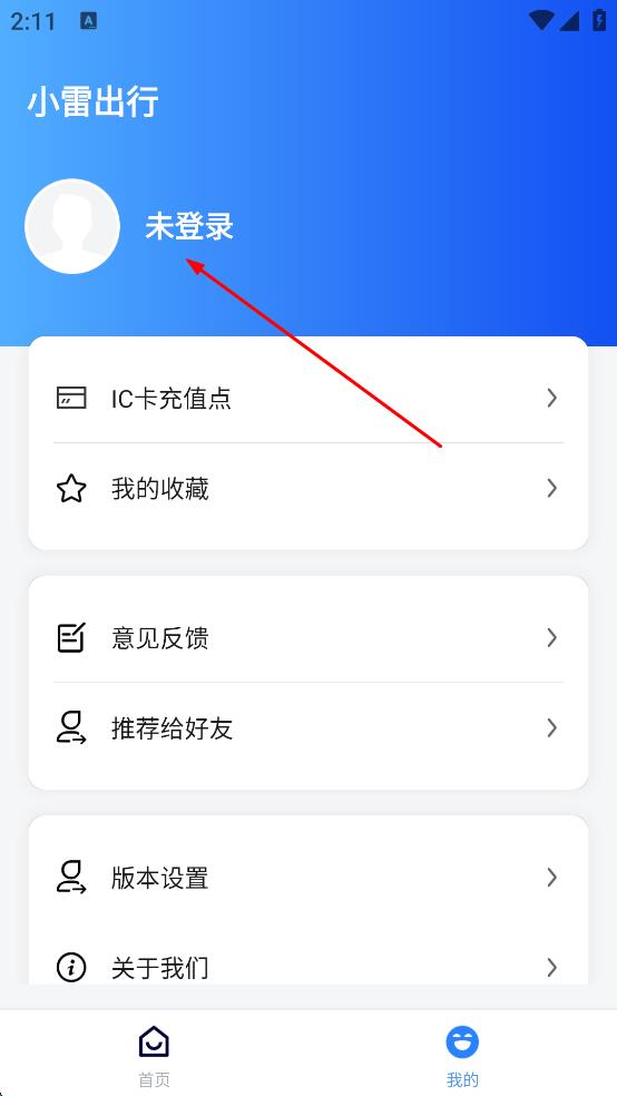 1、打开小雷出行APP,进入首页后,点击页面底部“我的”选项,进入个人中心页面。