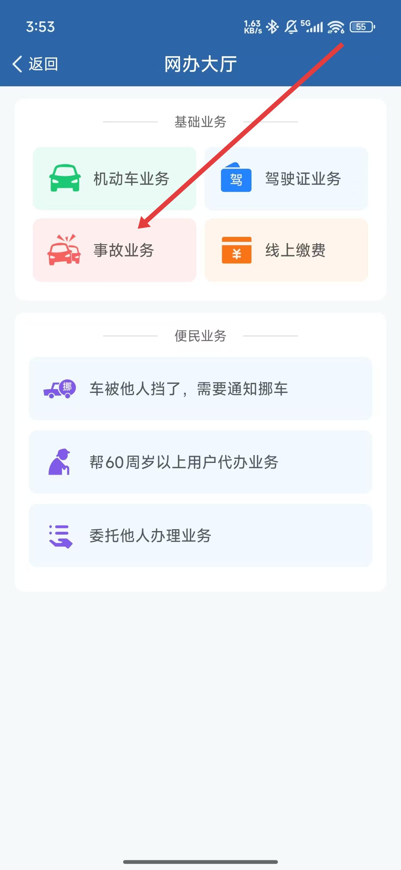 1、可以在网办大厅中点击事故业务,进入查看相关业务办理。