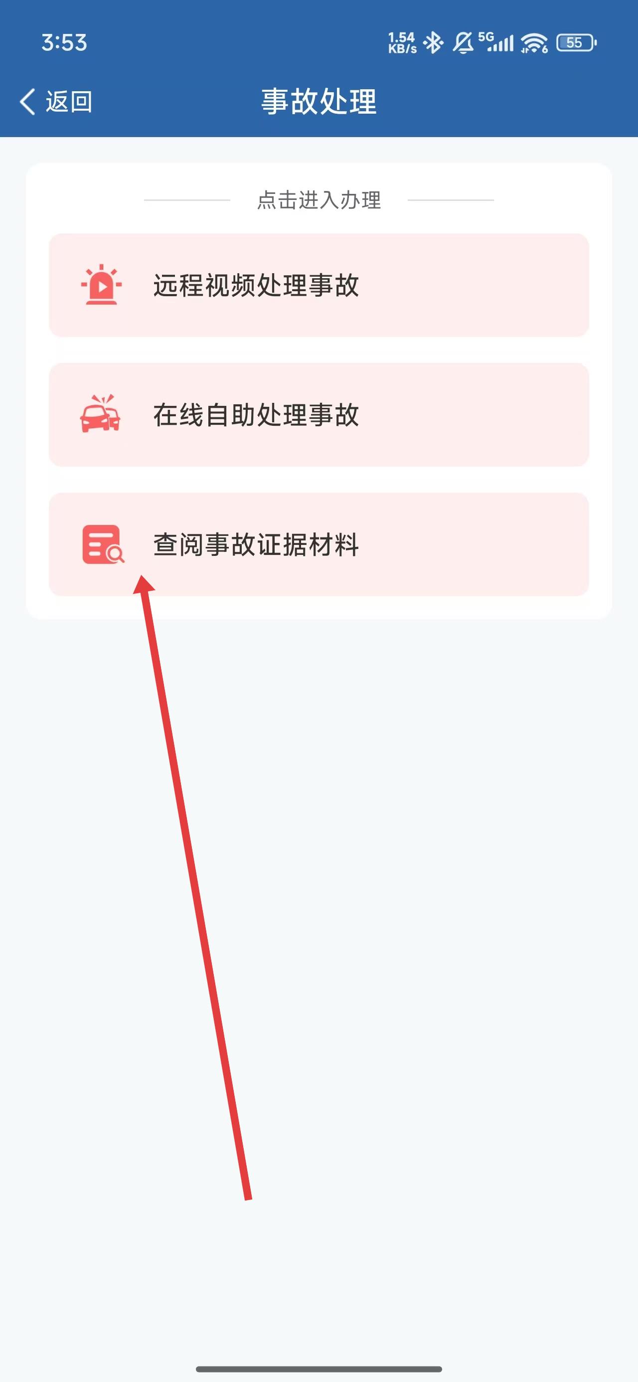 2、在事故处理页面中,点击查阅事故证据材料,进入查看相关信息。