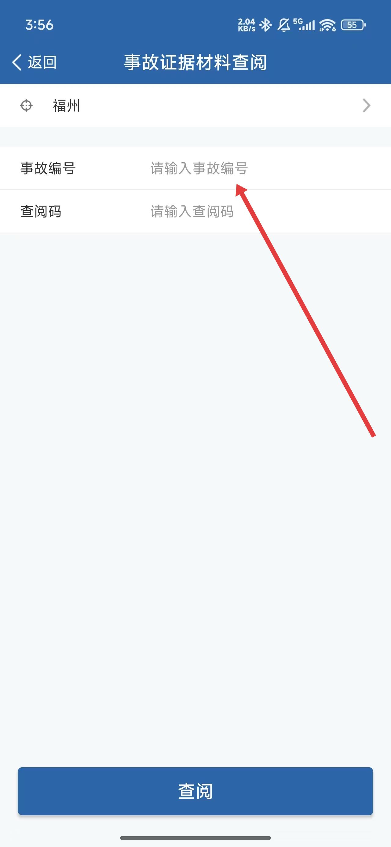 3、在输入框中依次输入事故编号和查阅码,即可查看事故证据信息。