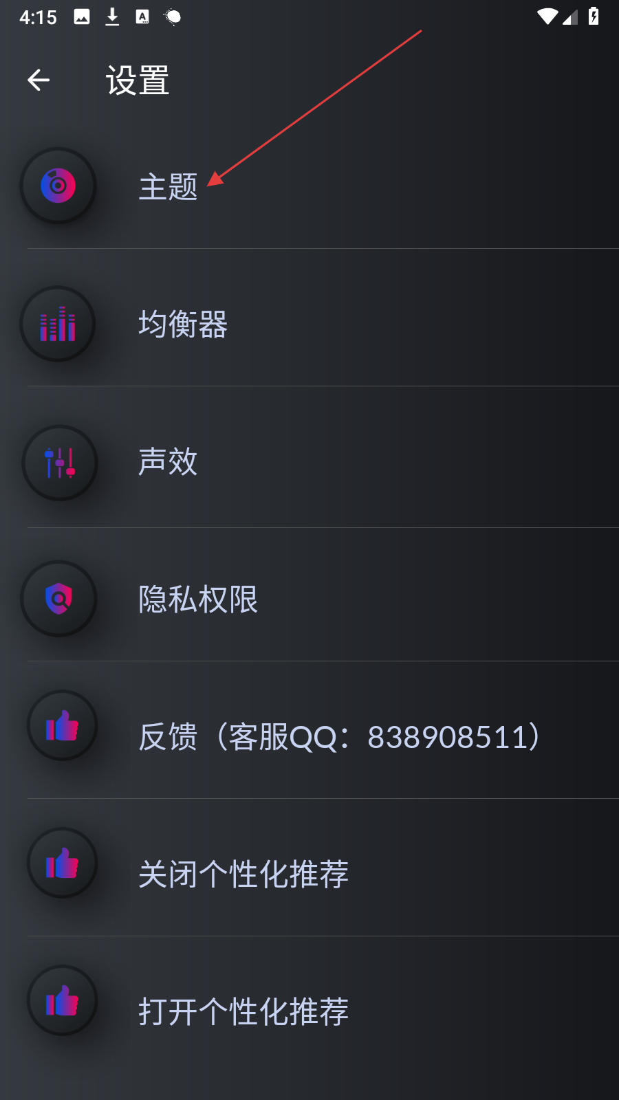 2、在设置页面中找到主题选项,点击进入主题选择界面。
