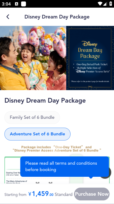 3、在购买界面提示说Please read all terms and conditionsbefore booking,也就是预订前请阅读所有条款及细则的意思,注意右下角如果显示Sold Out,就是这个票已经卖完了。