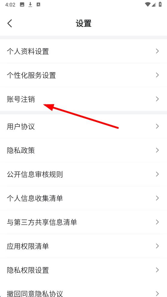 3、在设置页面里找到并点击账号注销的选项,然后按照页面提示完成后续的注销操作。