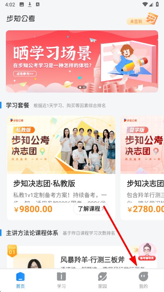 1、打开步知公考APP点击底部导航栏中我的选项,进入个人相关界面。