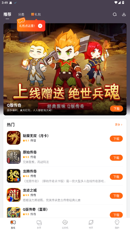 贪玩游戏盒(原贪玩世界)是一款集游戏辅助、云手机和社区互动于一体的实用APP。它支持云端24小时挂机托管,让玩家轻松解放双手,还能获取热门游戏推荐和独家福利礼包。软件内设有攻略专区和玩家社区,方便大家交流经验、分享心得,摆脱单机式游戏的孤单感。无论是想要提升游戏效率,还是寻找志同道合的伙伴,贪玩游戏盒都能满足需求,是游戏玩家必备的好帮手。