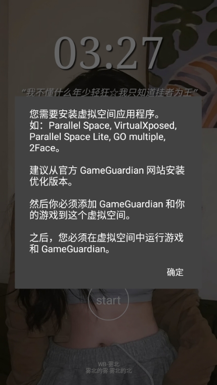 2、选择好工作模式之后,接下来我们可以正式进入到app主界面,然后点击“start”。