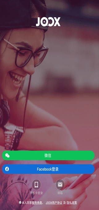 1、JOOX音乐支持用户使用微信,手机号或邮箱方式登录账号
