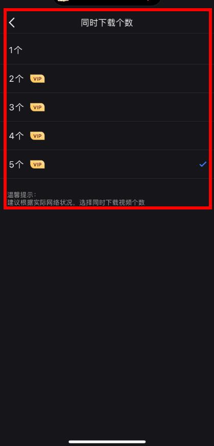 3、进入同时下载个数页面后,选择想要设置的下载个数即可完成设置。