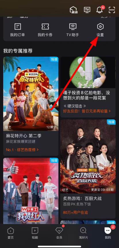 1、打开优酷APP,点击底部导航栏我的,再点击设置图标。