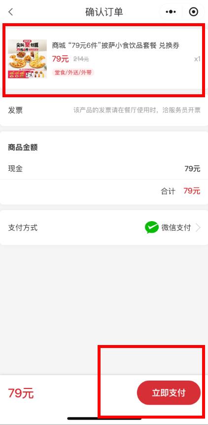 3、进入确认订单页面,确认套餐信息无误后,选择支付方式,点击立即支付完成付款,即可成功购买团购套餐。