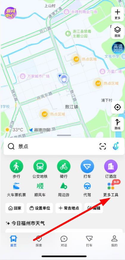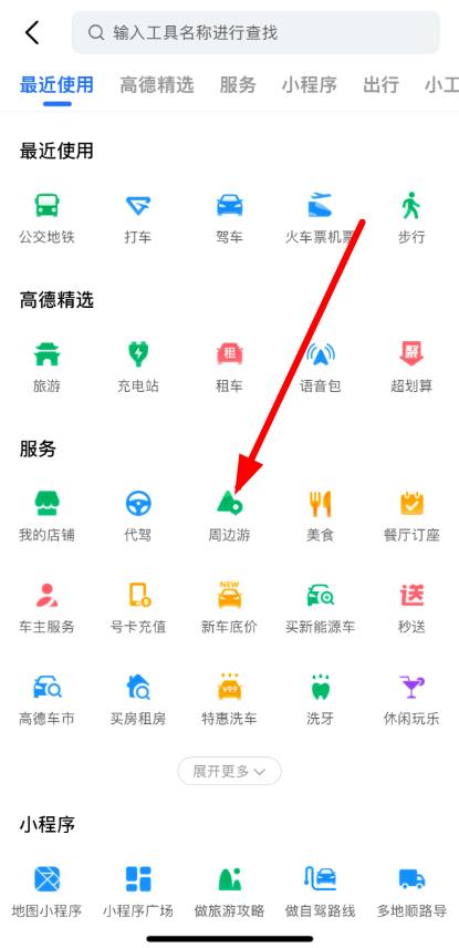 2、在更多工具页面的服务板块中,找到并点击周边游。