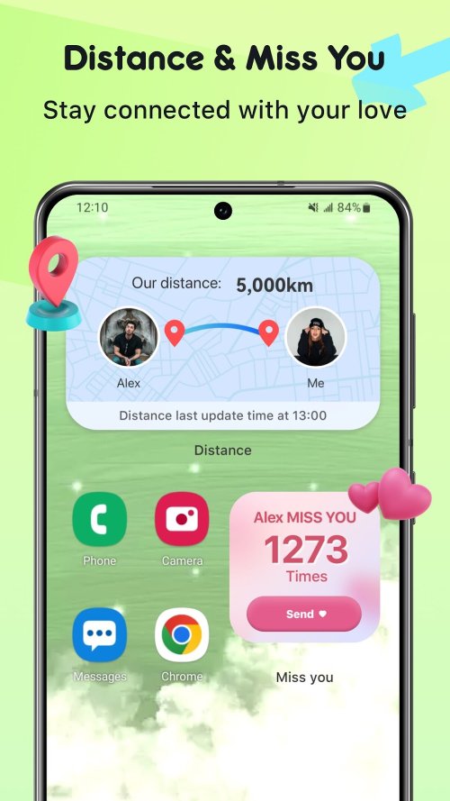 可以在桌面上展示你和对方的实时距离,你总能知道你离你的朋友或者恋人有多远。