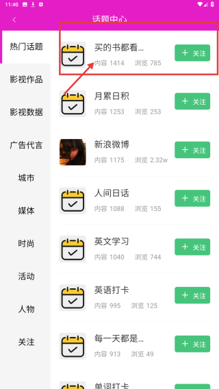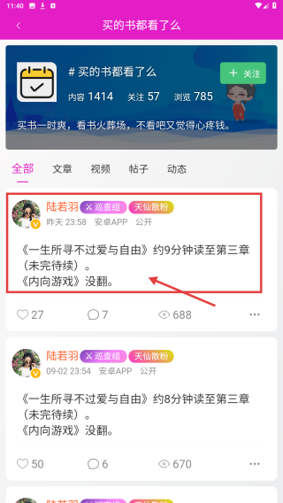 2、在话题选择页面,点击买的书都看了么话题,进入该话题详情页。