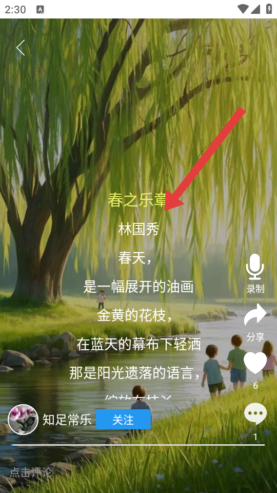 3、进入作品播放页面后,语音会自动播放,也可以根据界面操作控制播放,即可聆听语音内容。