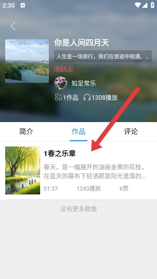 2、在专辑详情页的作品栏,点击具体作品如春之乐章,进入作品的播放页面。