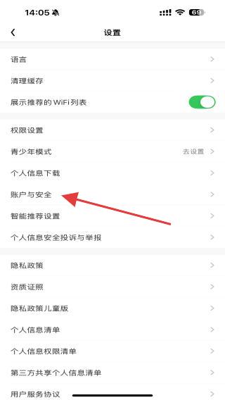 2、在设置的页面中,找到并点击账号与安全的选项。
