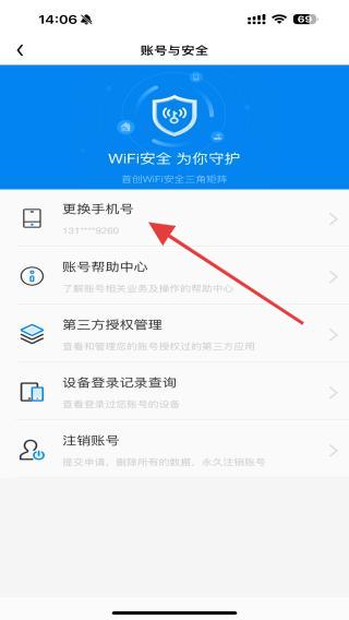 3、在账号与安全的页面中,用户需点击更换手机号选项,即可更换手机号。