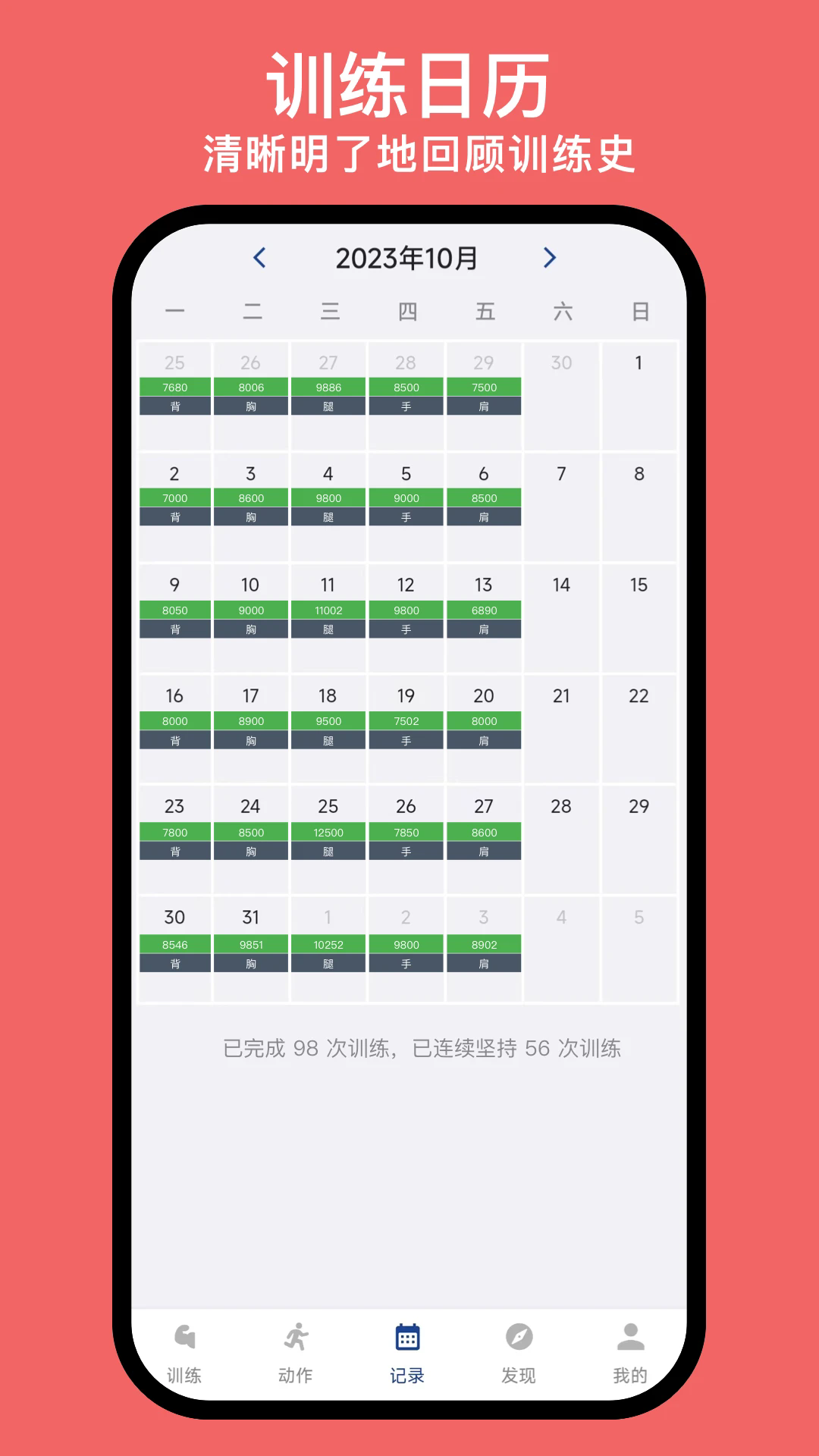 2.在练练健身,你可以记录和查看每次的训练内容,更有统计数据,随时回顾过往记录,看见自己的成长。