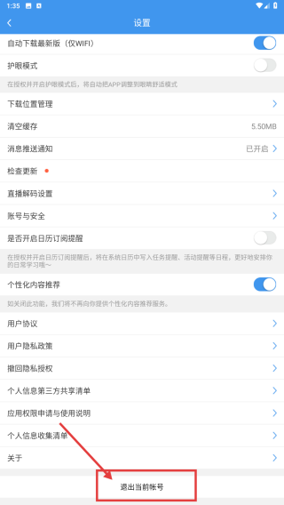 3、在设置页面,点击退出当前账号按钮,完成退出账号操作。