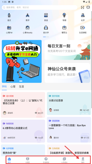 1、在线学习精品课程:打开软件进入课程板块,选择感兴趣的课程类型,点击课程即可免费观看学习,巩固学科知识。